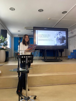 Студентка 3 курса специализации «Дизайн» Эльвира Карачевцева под руководством преподавателя СКИ Э.Е. Зимаевой выступила с докладом на тему «Творчество сахалинского художника Гиви Манткавы». Елена Бородина, студентка 2 курса, представила доклад «Образно-стилистический анализ живописного произведения Гиви Манткава “Агроном” из фондов Сахалинского областного художественного музея» под руководством А.Ю. Львовой, искусствоведа и главного научного сотрудника СОХМ.